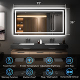 2022 Collection Backlit + Frontlit LED Mirror for Bathroom 72 x 36 Inch