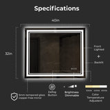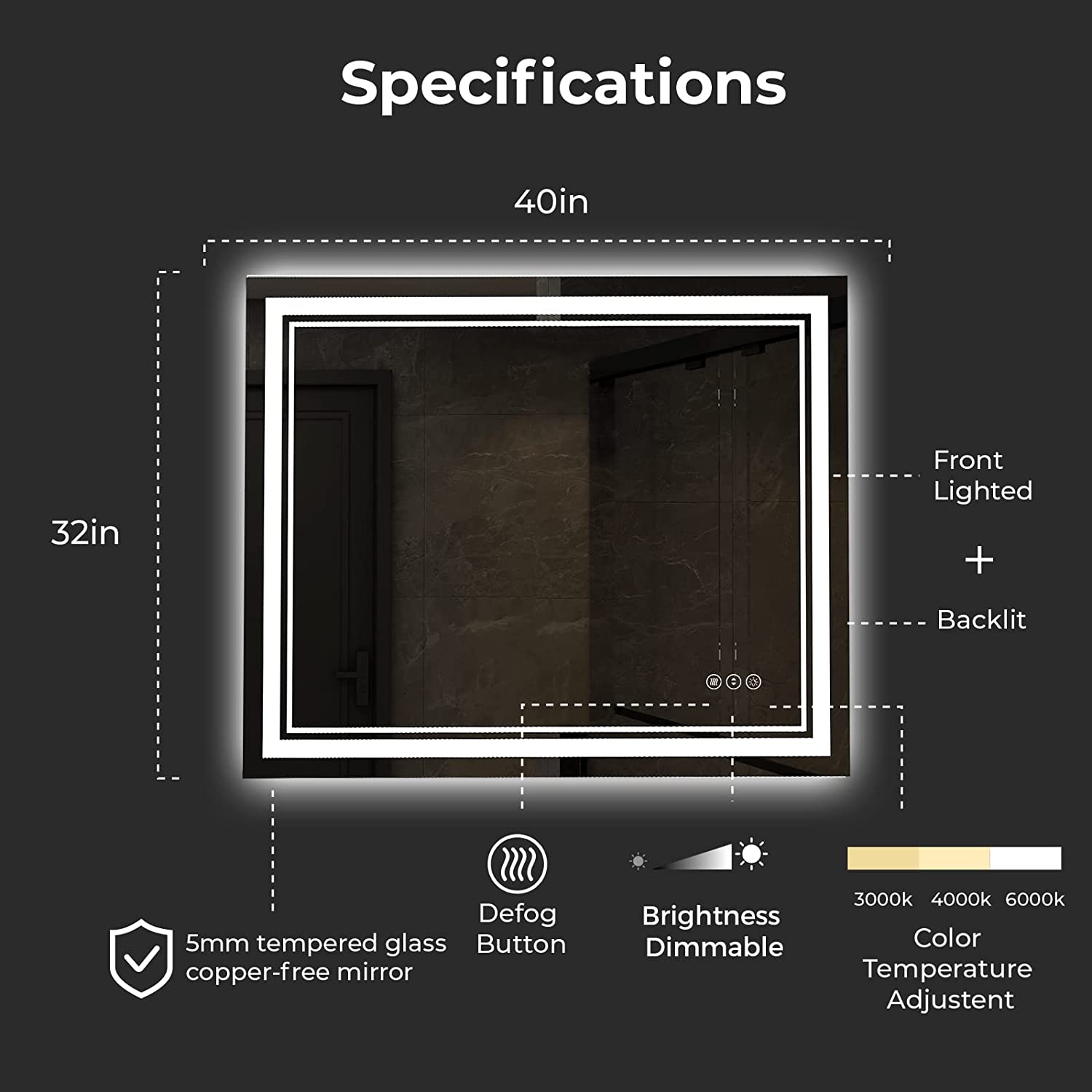 Awandee Backlit + Front-Lighted LED Mirror for Bathroom 40 X 32 Inch