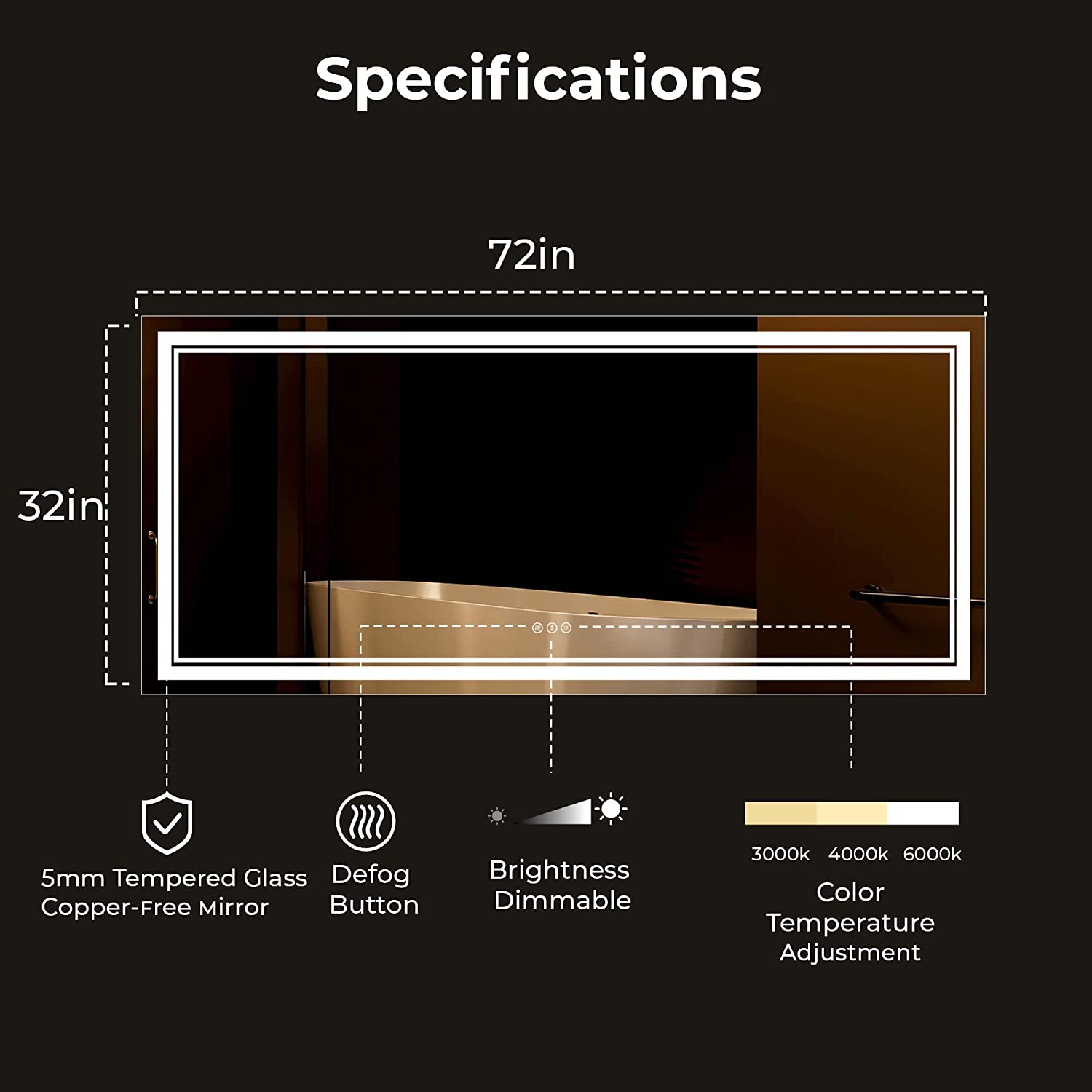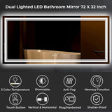 Awandee Home Backlit + Front Lighted Vanity Mirror for Bathroom 72 x 32 Inch