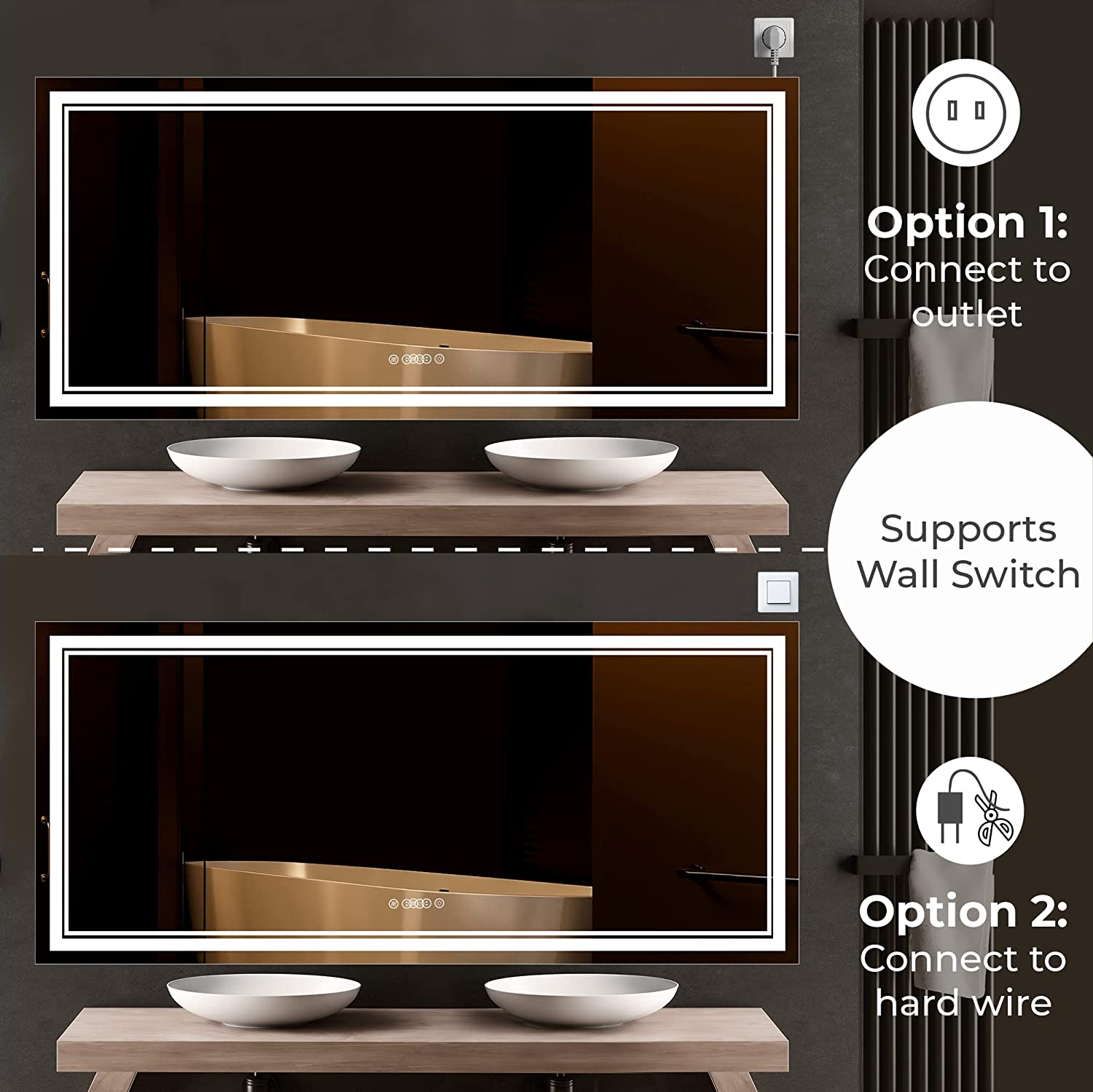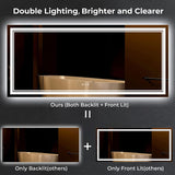 Awandee Home Backlit + Front Lighted Vanity Mirror for Bathroom 72 x 36 Inch