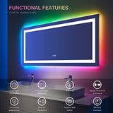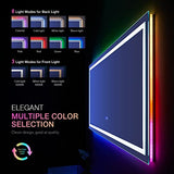 - 【RGB Backlit+Front-lighted】: With double lights, The RGB led bathroom mirror provides enough light for applying makeup and shaving. Both back light and front light could be dimmable. THE BACK LIGHT COULD BE JUST WHITE AS WELL. There are 8 light modes for backlight (cold light, white light, warm light,colorful, pink, red, green, blue) and 3 light modes for front light (cold light, white light, warm light). A fashion modern LED mirror, adds luxury to your bathroom.