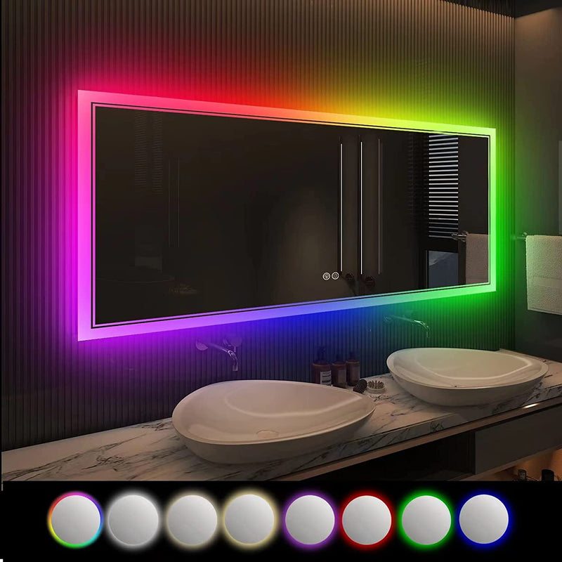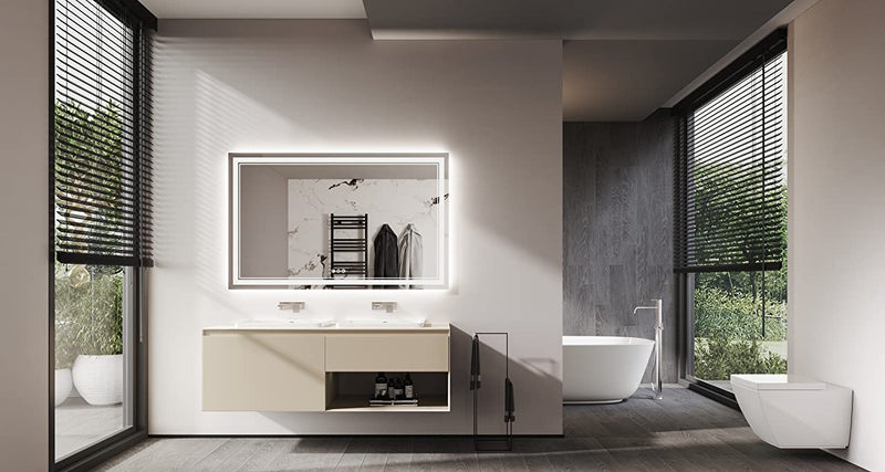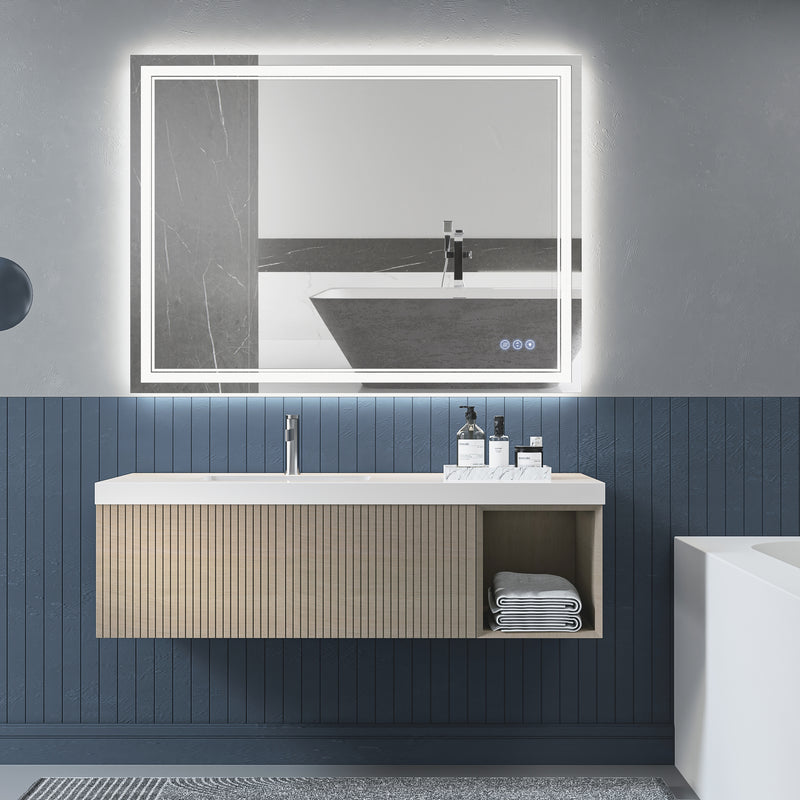 The smart mirror has double built-in LED strip lights, Backlit and Front lighted are much brighter than the backlit only bathroom mirror. It is super bright to support make up.