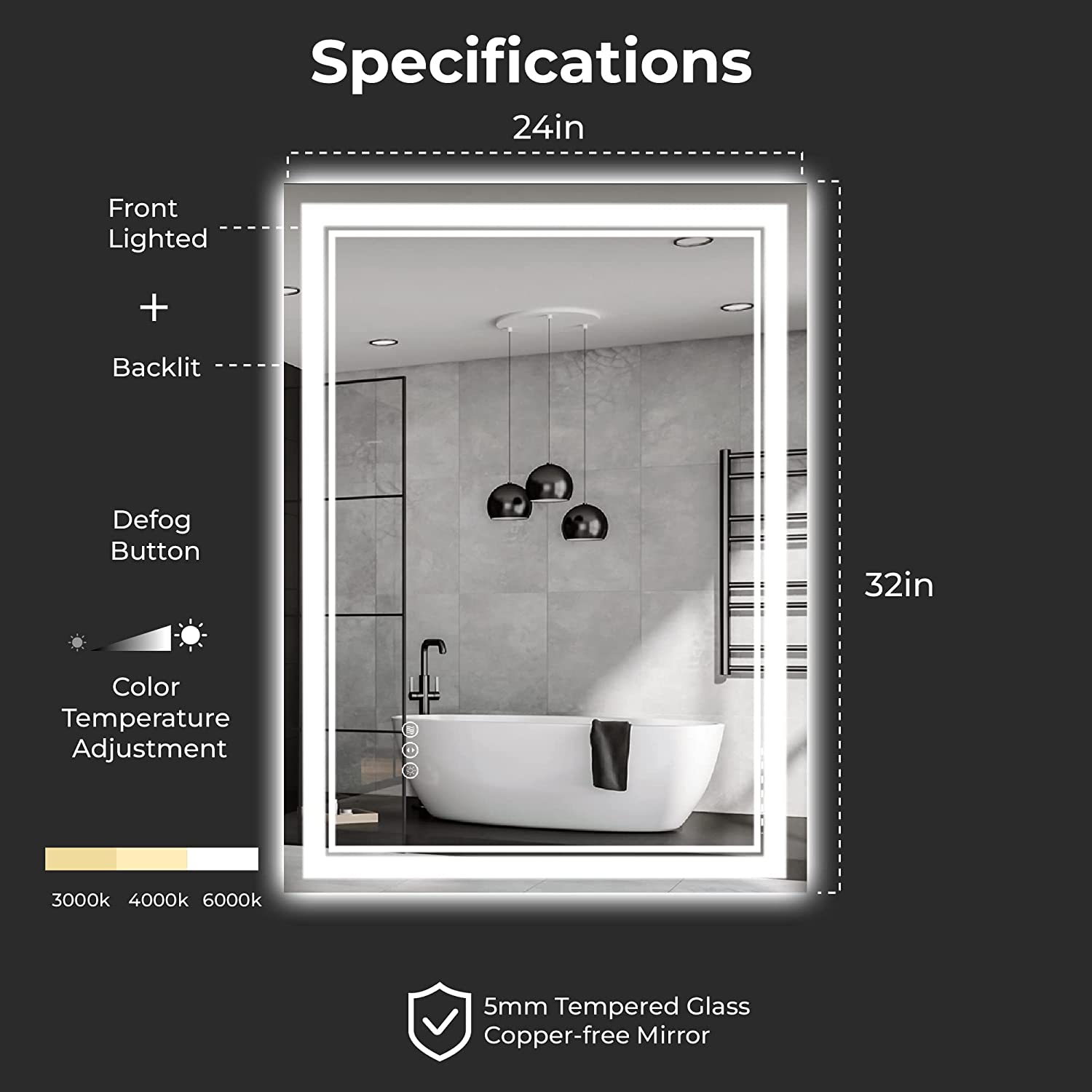 Awandee Backlit + Front-Lighted LED Mirror for Bathroom 24 x 32 Inch
