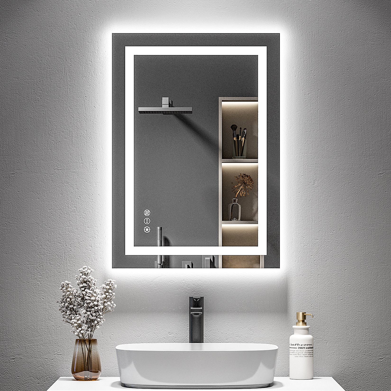 【Upgraded Dual LED Light Strips, Brighter and Clearer】- LED mirror for bathroom features two IP54 waterproof LED strips that provide both ambient and front lighting, making it brighter and clearer than the previous generation of backlit bathroom mirrors. The Double LED Strips provides 4520 high lumens, energy saving, and can be used for 50000+ hours. This bathroom mirrors for wall can bring a better experience to makeup, skincare or shaving